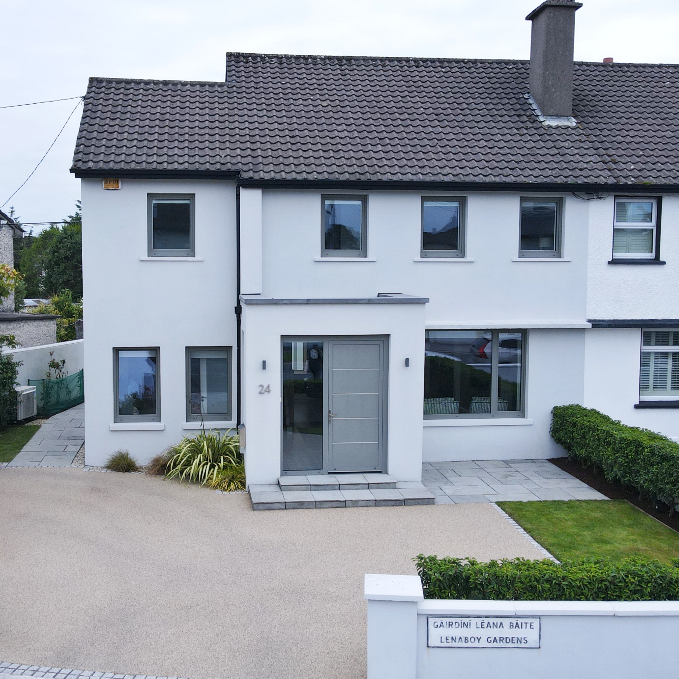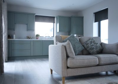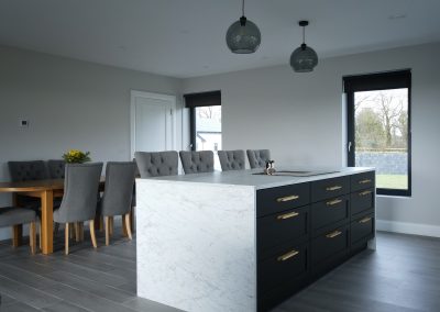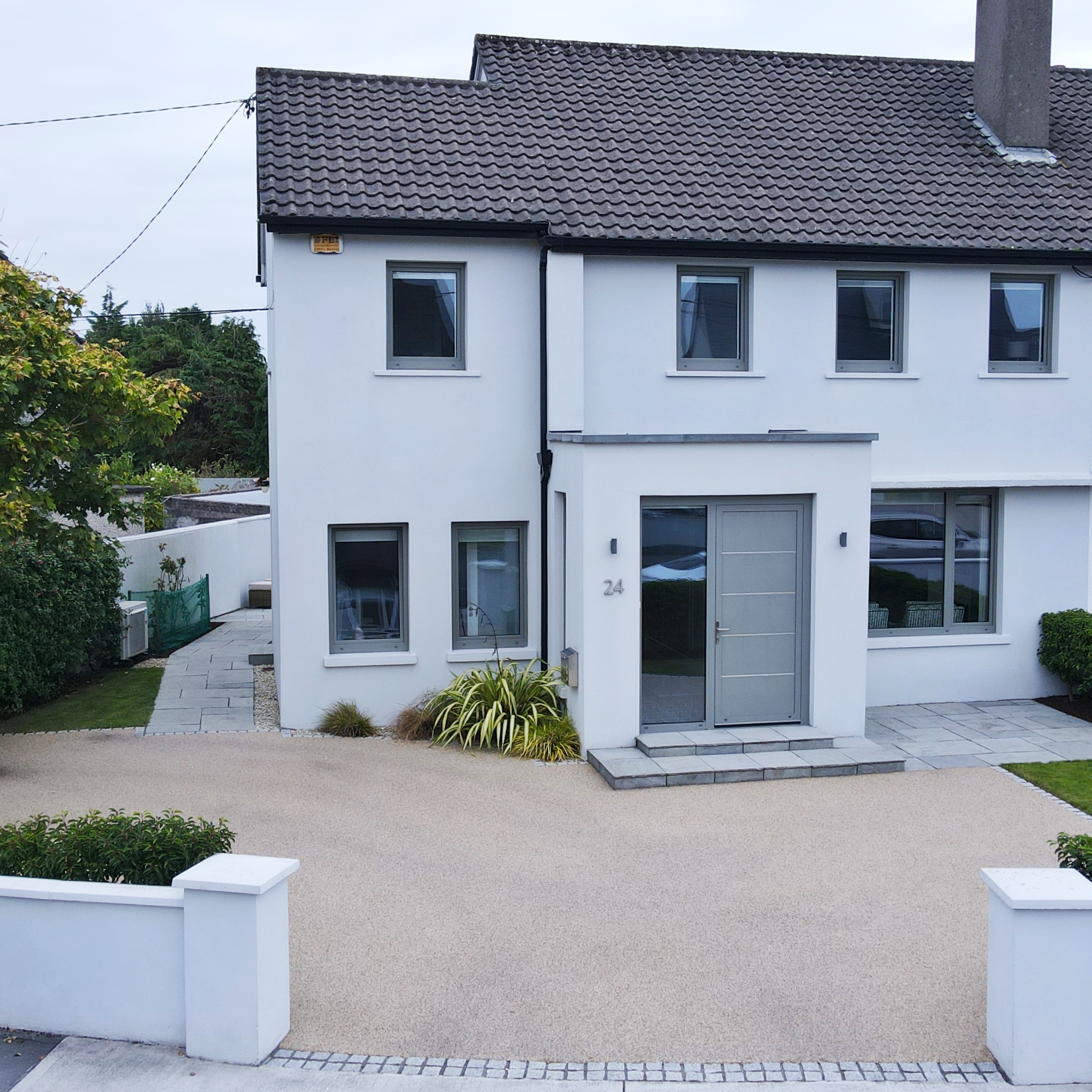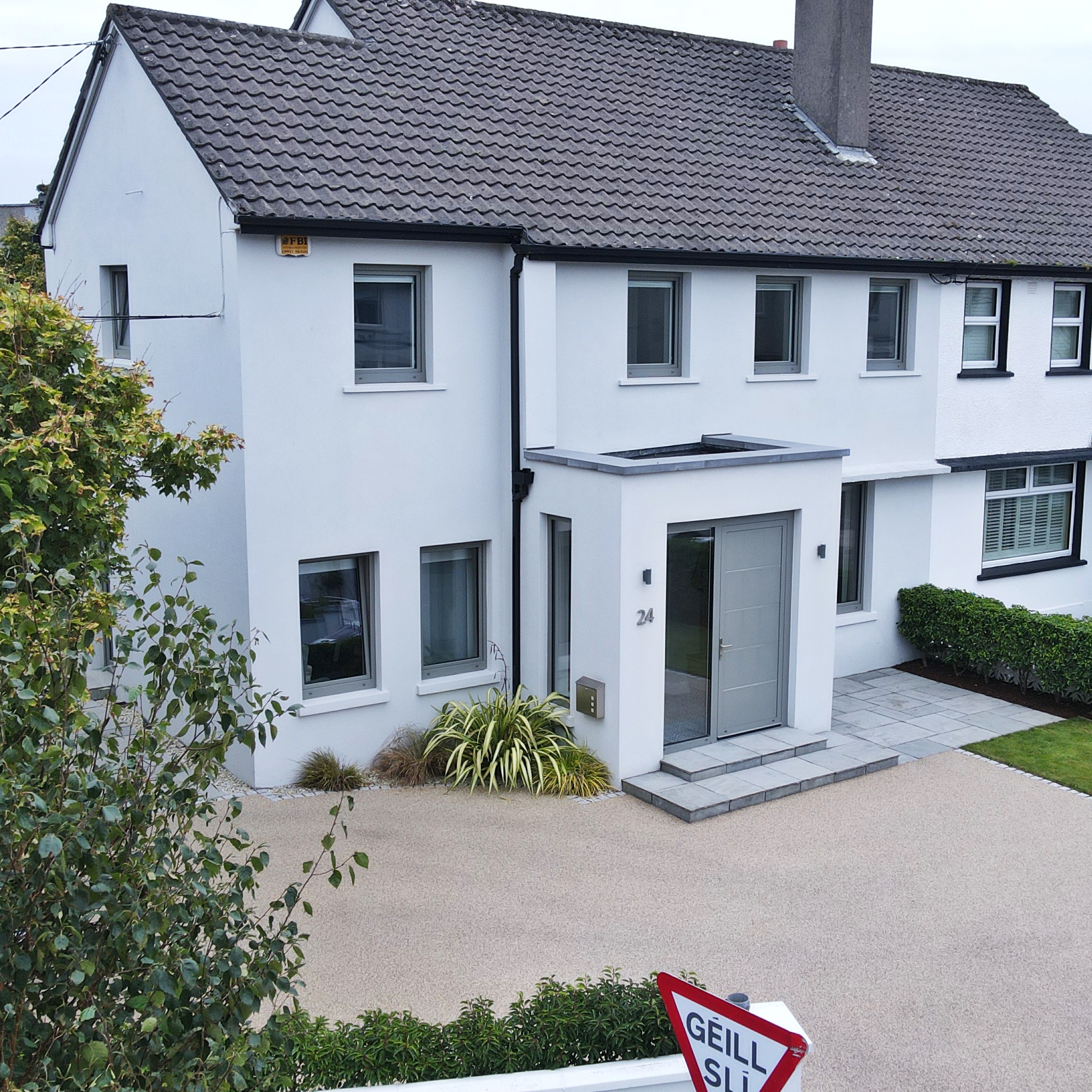 This renovation in Moneen saw a complete upgrade throughout the home with a strong focus on modern finishes and functionality. A brand-new kitchen was fitted with sleek stone tile countertops and paired with light grey vinyl floor tiles for a clean, contemporary look. The bathrooms were fully modernised to a high standard, and a feature TV was seamlessly built into the sitting room wall, adding a touch of luxury and convenience. The result is a stylish and practical living space tailored for modern living.