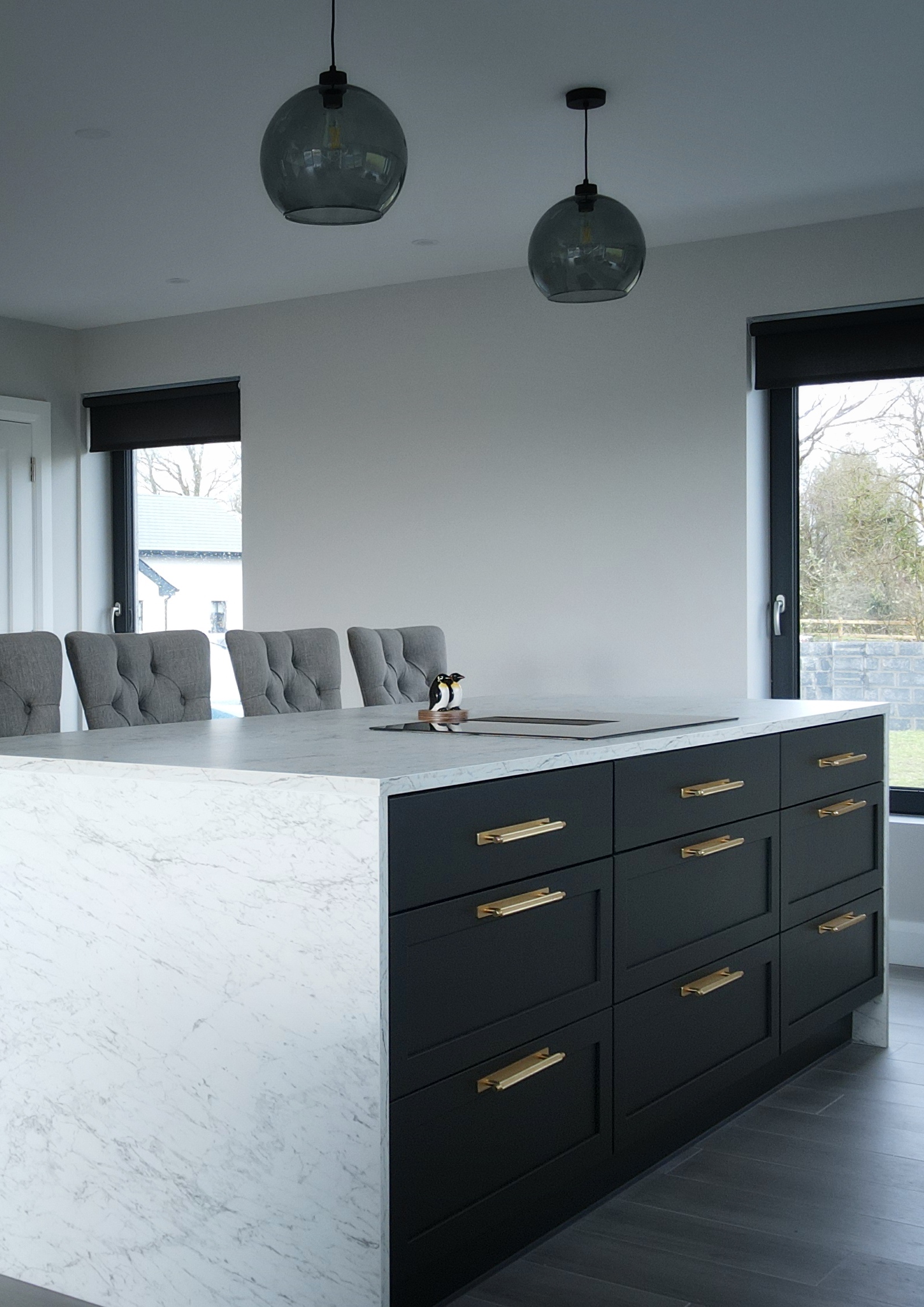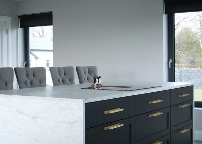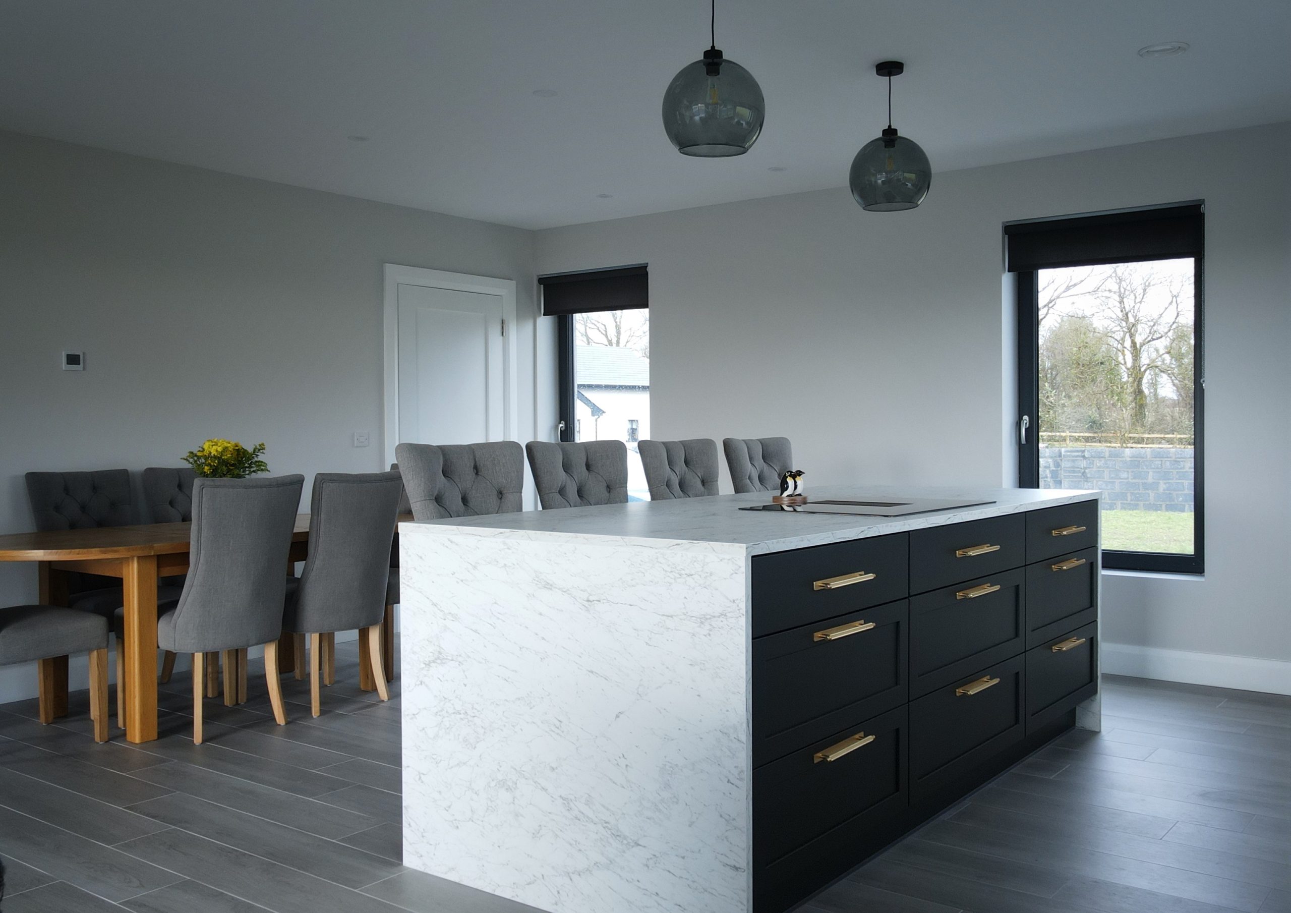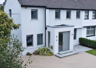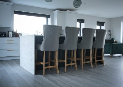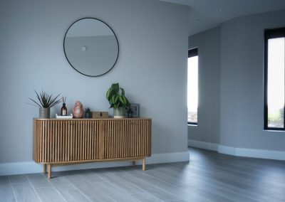This renovation in Moneen saw a complete upgrade throughout the home with a strong focus on modern finishes and functionality. A brand-new kitchen was fitted with sleek stone tile countertops and paired with light grey vinyl floor tiles for a clean, contemporary look. The bathrooms were fully modernised to a high standard, and a feature TV was seamlessly built into the sitting room wall, adding a touch of luxury and convenience. The result is a stylish and practical living space tailored for modern living.